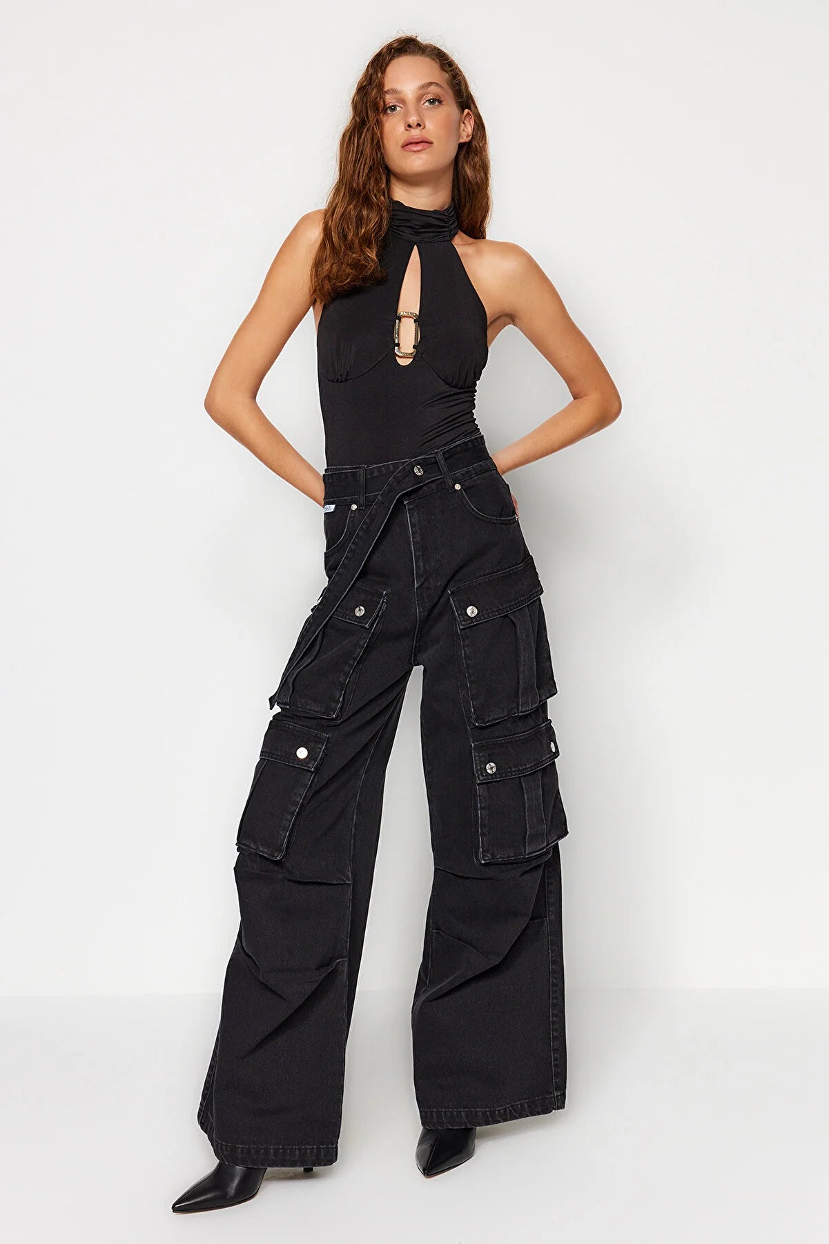 Black Pocket Detailed Cargo Pants