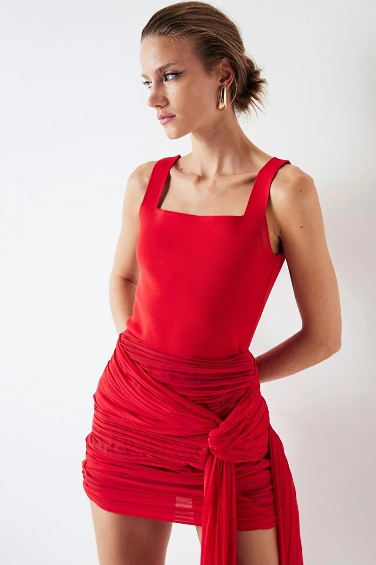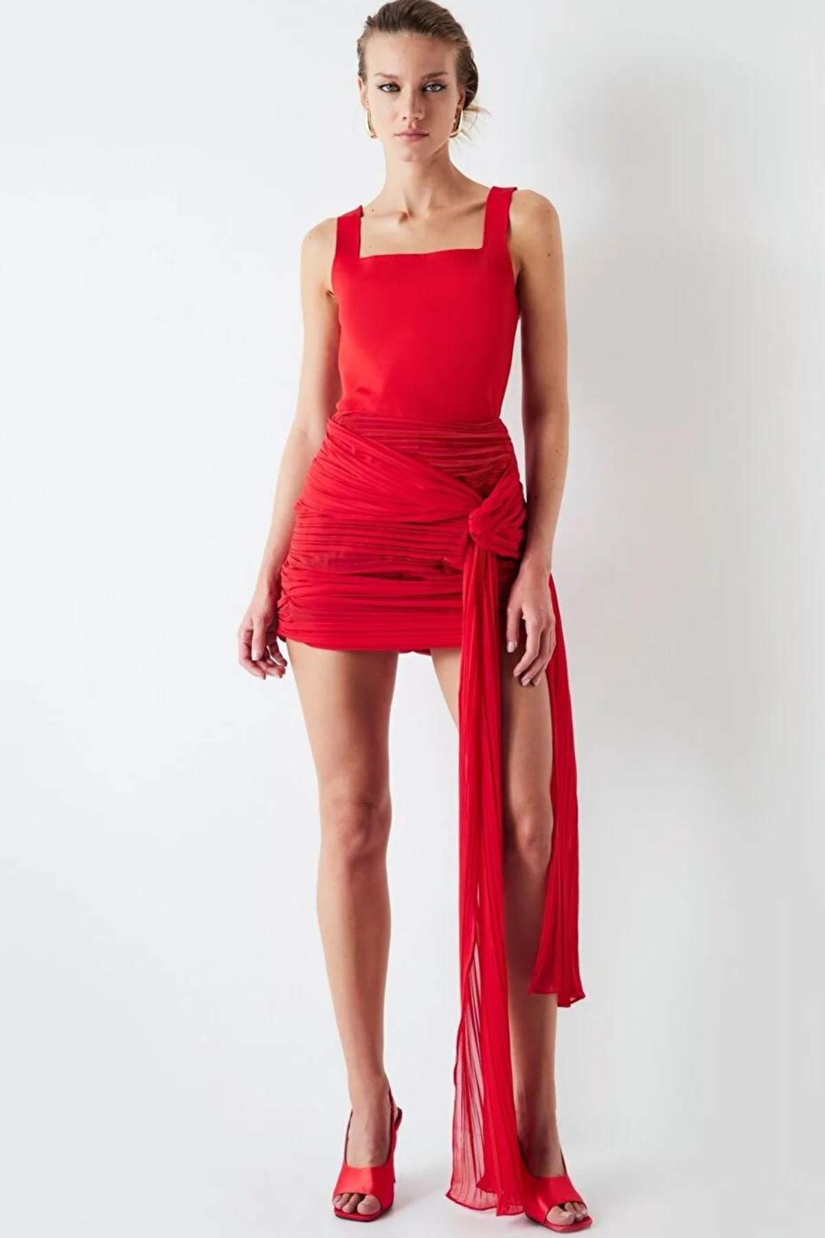Red Draped Mini Skirt