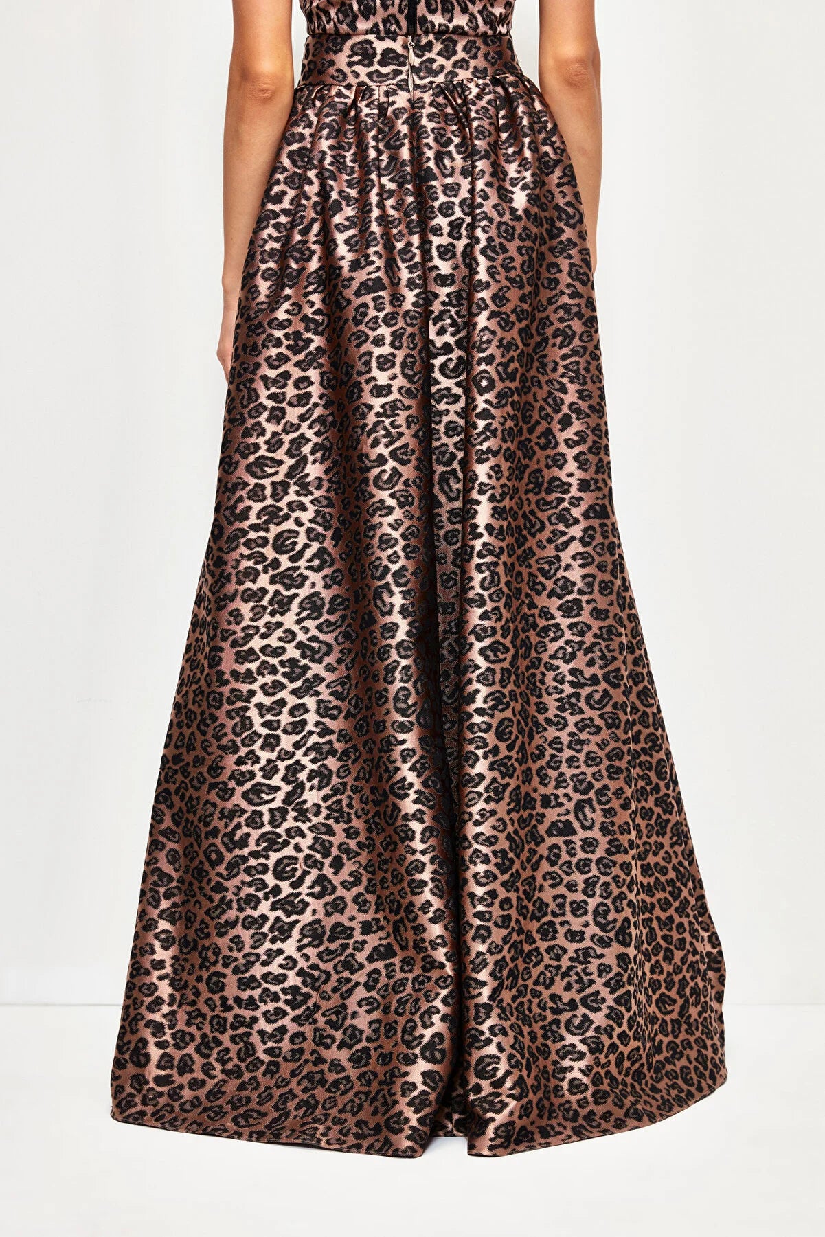 Leopard Pattern Jacquard Long Skirt and Bustier Top