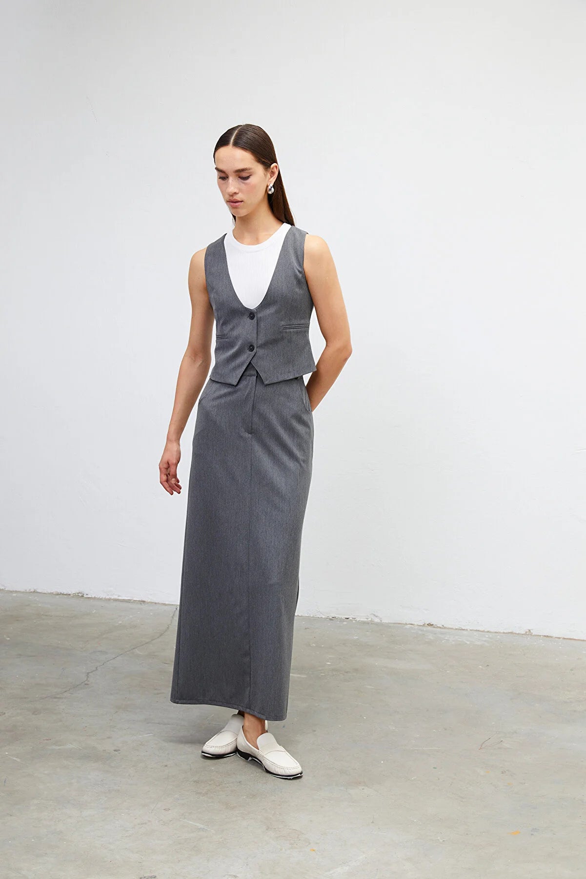 Grey Hight Waist Maxi Skirt