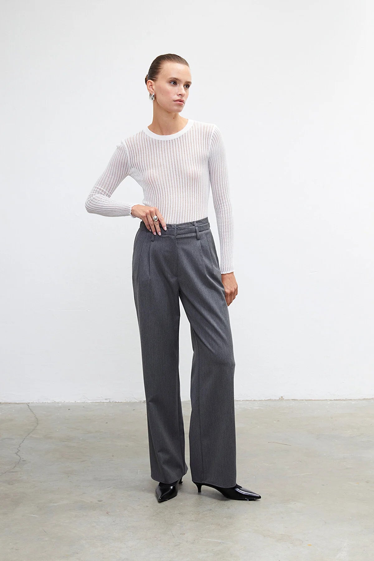 White Crew Neck Transparent Top