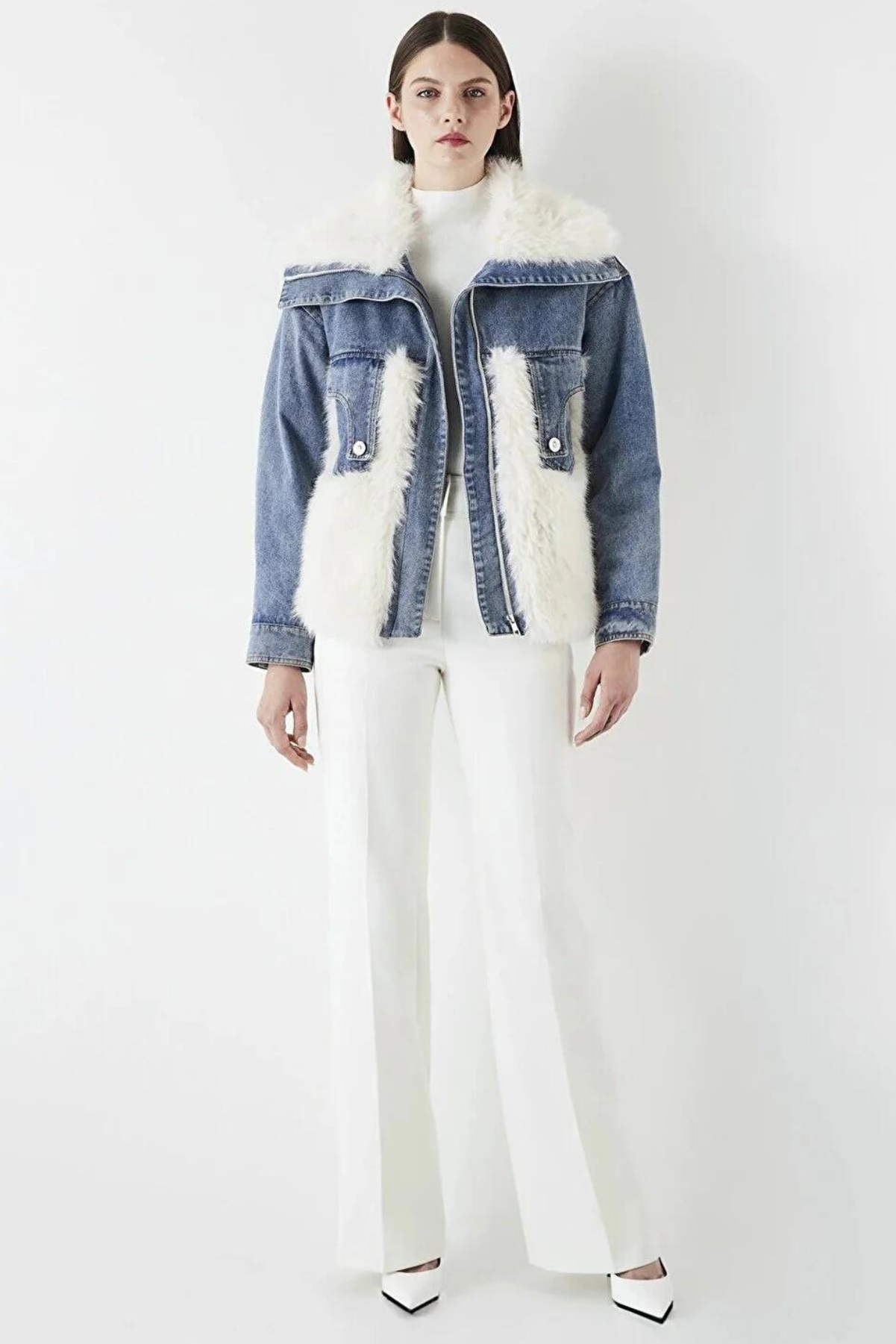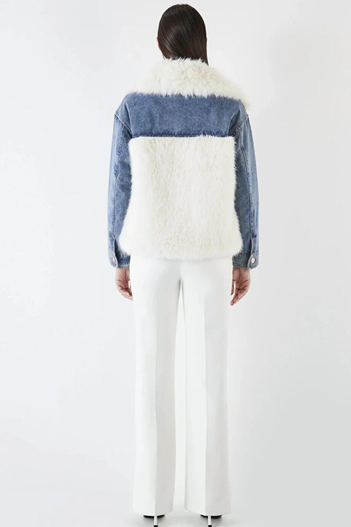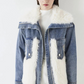 Faux Fur and Denim Mix Coat