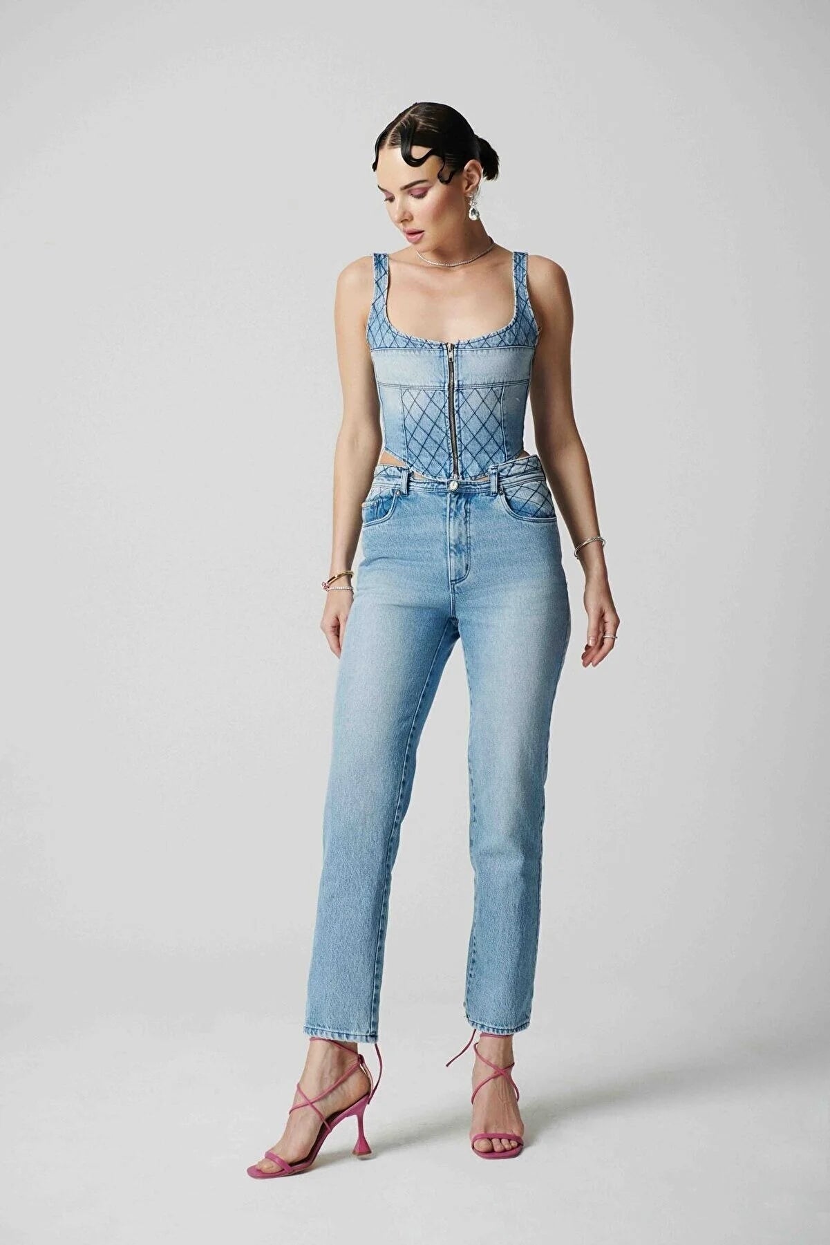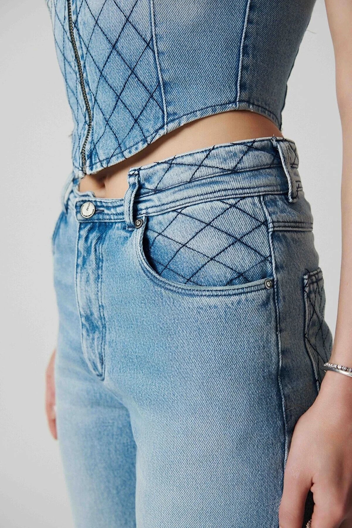 Care: Wash at 40 degrees. Denim can give color to light-colored clothes and surfaces due to its nature, and its color can lighten as it is worn. Wash with similar colors. Wash inside out. Do not dry in a tumble dryer. Can be ironed at medium temperature. Do not store wet.