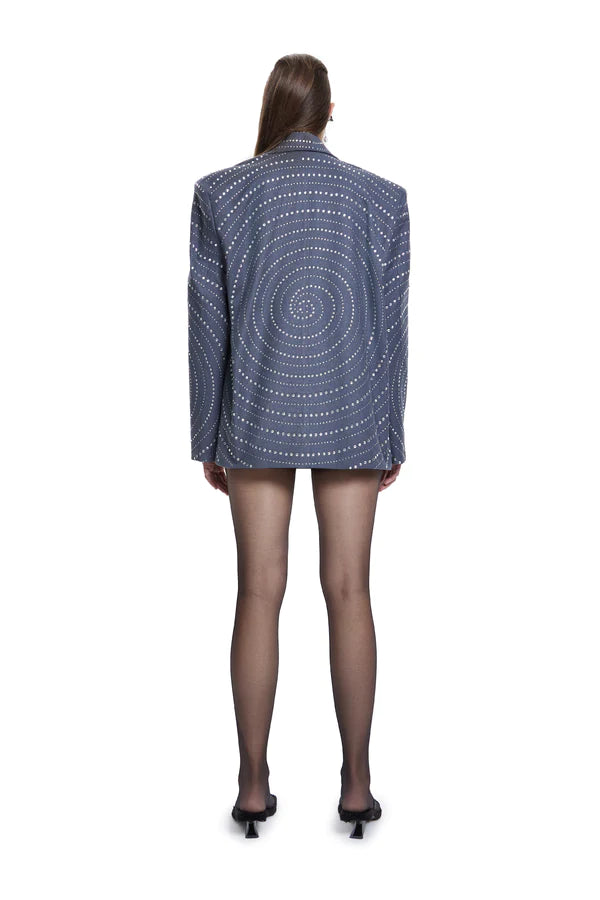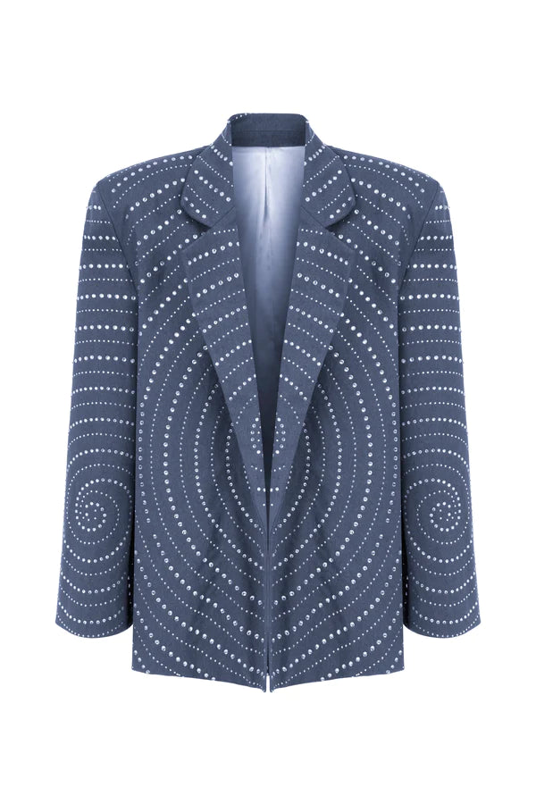 Elevate your outerwear game with the Celestial Blazer jacket, meticulously adorned with shimmering stones. It is designed to perfection for a flawless fit. This classic and stylish piece features convenient pockets, adding both functionality and flair to your ensemble.