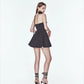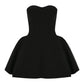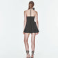 Our mini drape dress exudes elegance, featuring a fitted bodice and voluminous godet accents along the side seams.