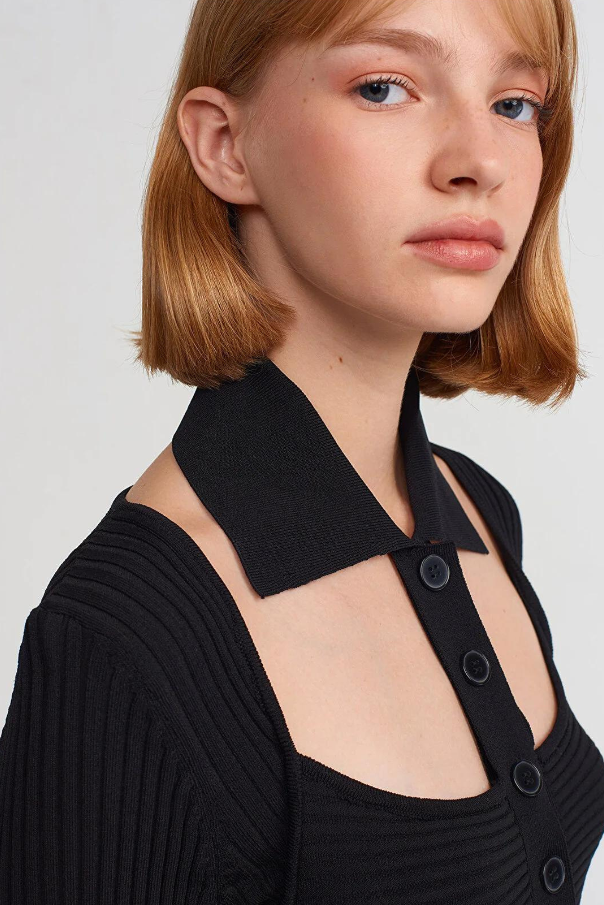 Black Cut Out Detailed Buttoned Knitwear Dress