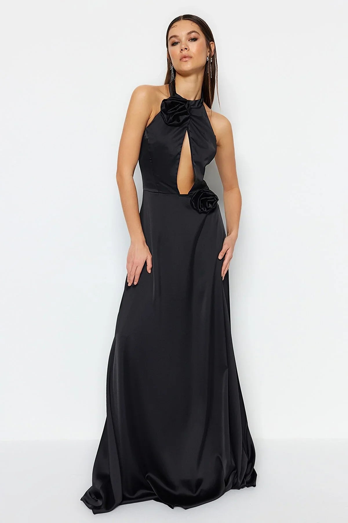 Black Rose Satin Dress