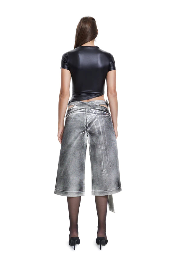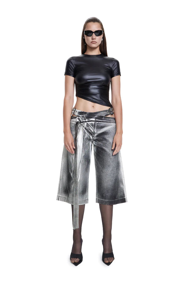 These pants boast a modern and distinctive style, featuring cutout details on the sides of the waist. Whether you're aiming to make a bold fashion statement or simply want to add a touch of individuality to your look, these short pants are the ideal choice for embracing both creativity and comfort.