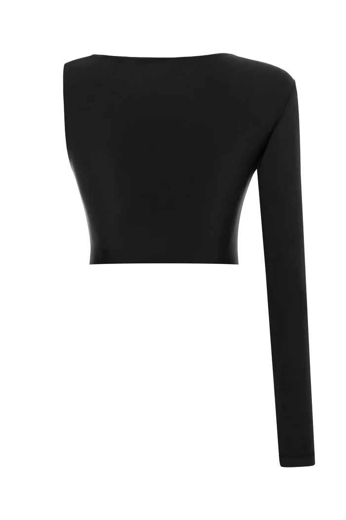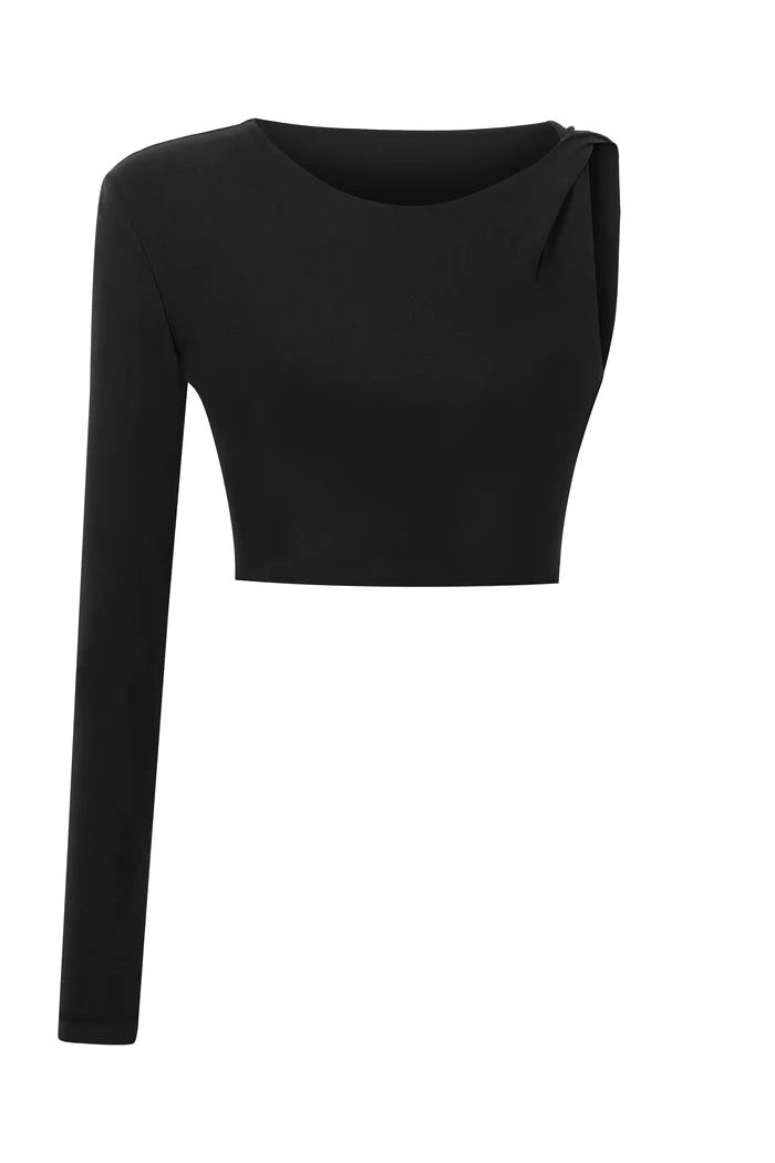 Introducing a distinct and stylish piece - our one-sleeved sensation. With one long sleeve and a hidden back zipper, it's not only fashionable but also incredibly easy to wear.