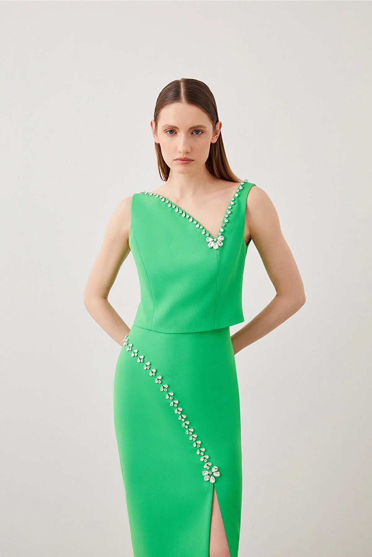 Green Stone Embroidered 2 Piece Matching Set