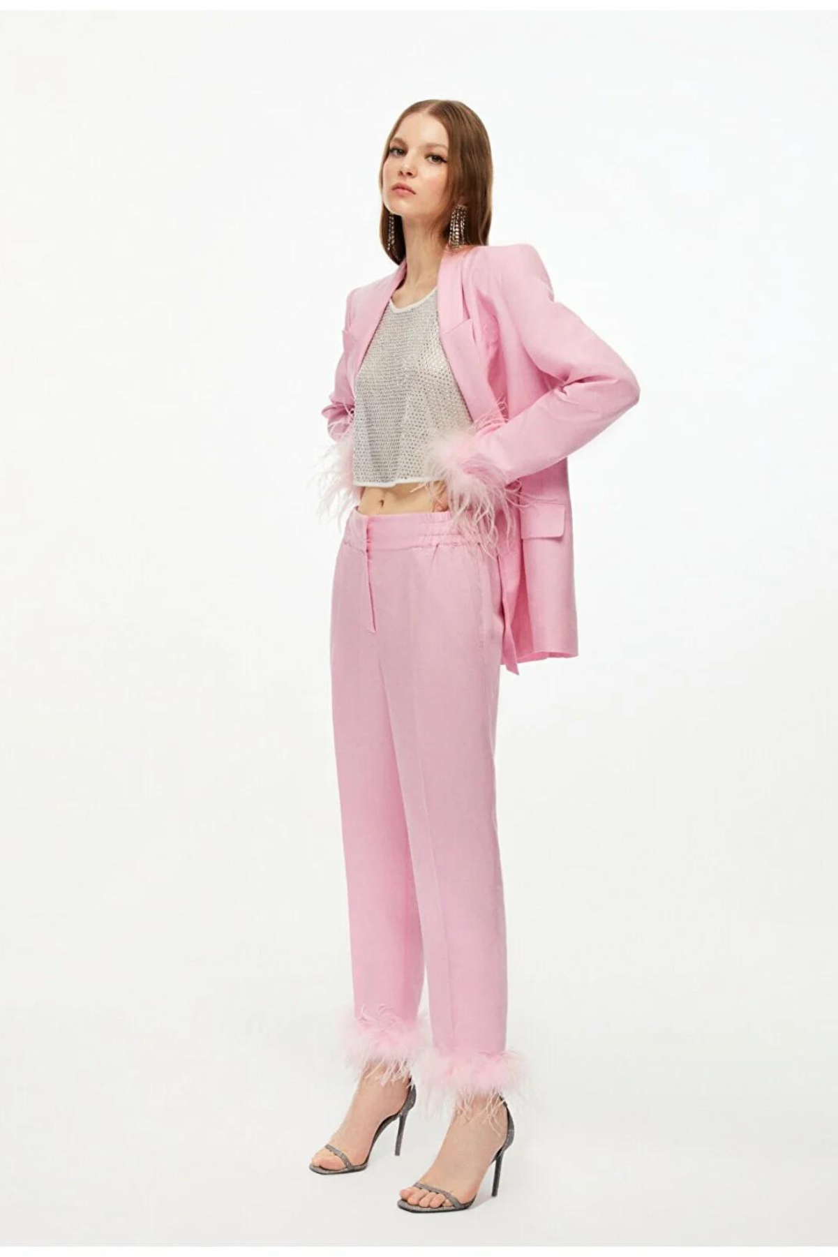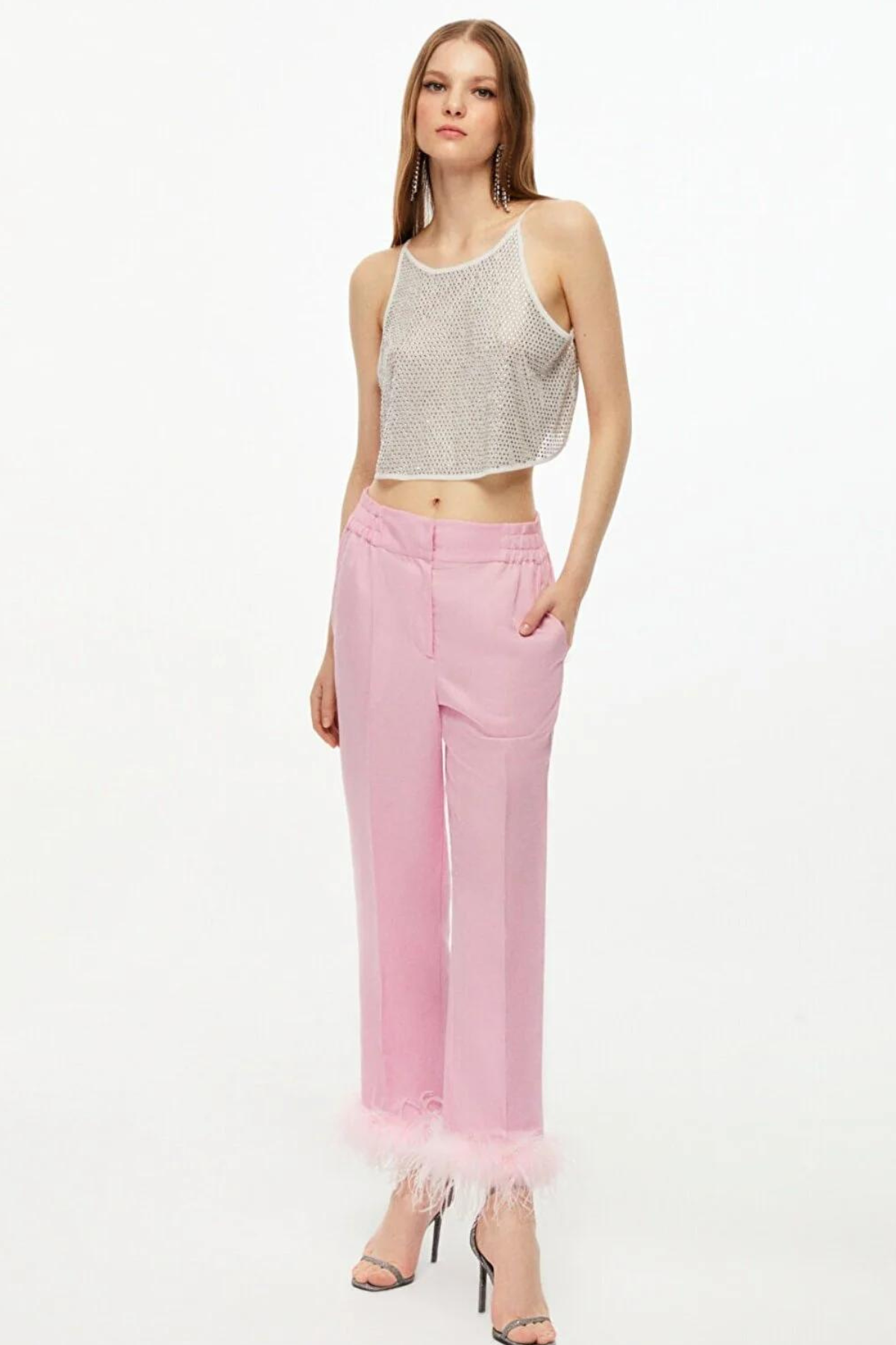 Pink Feather Detailed Pants
