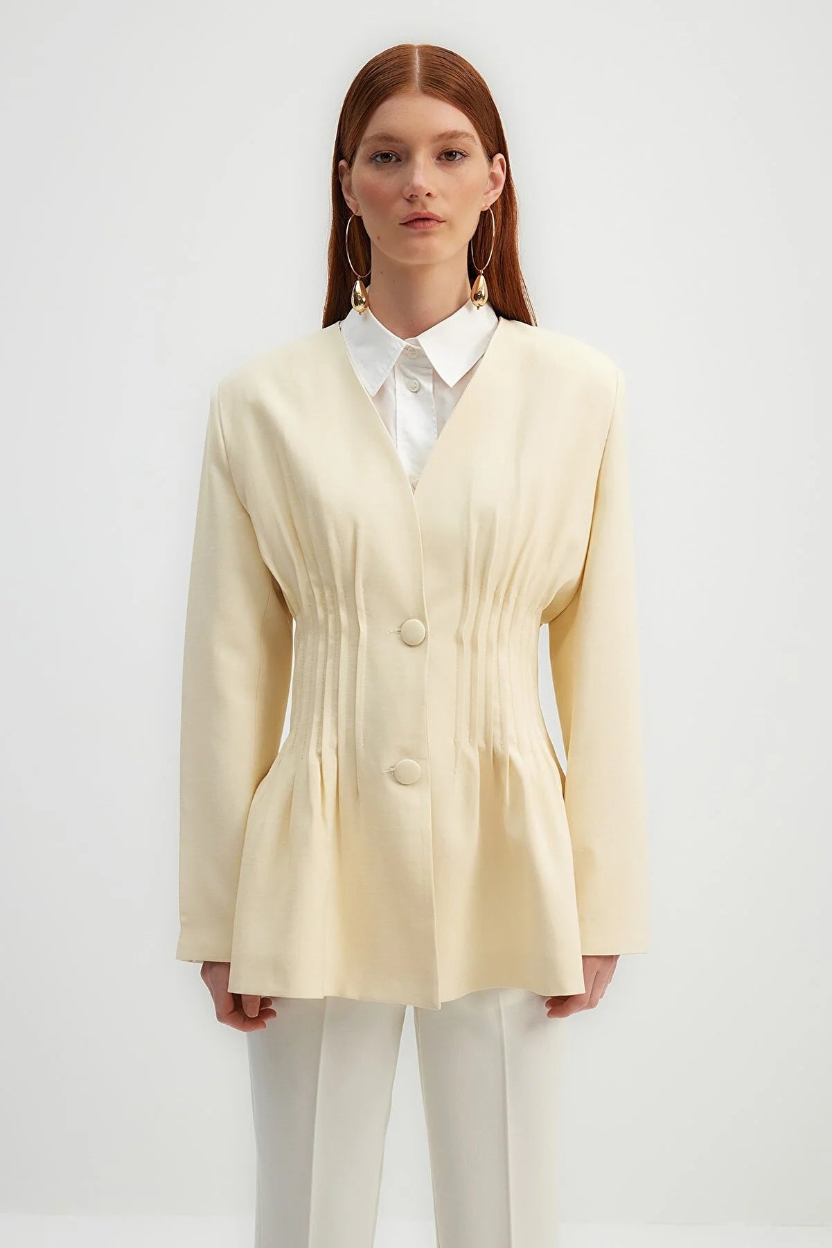 Beige Rib Detailed Woven Jacket