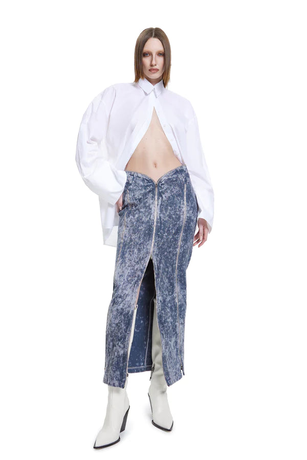 The Manipulator Skirt boasts three adjustable zipper details, both on the sides and the front. These zippers not only serve as a fashionable element but also allow you to customize the fit and create various looks.