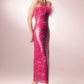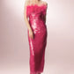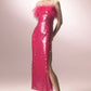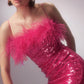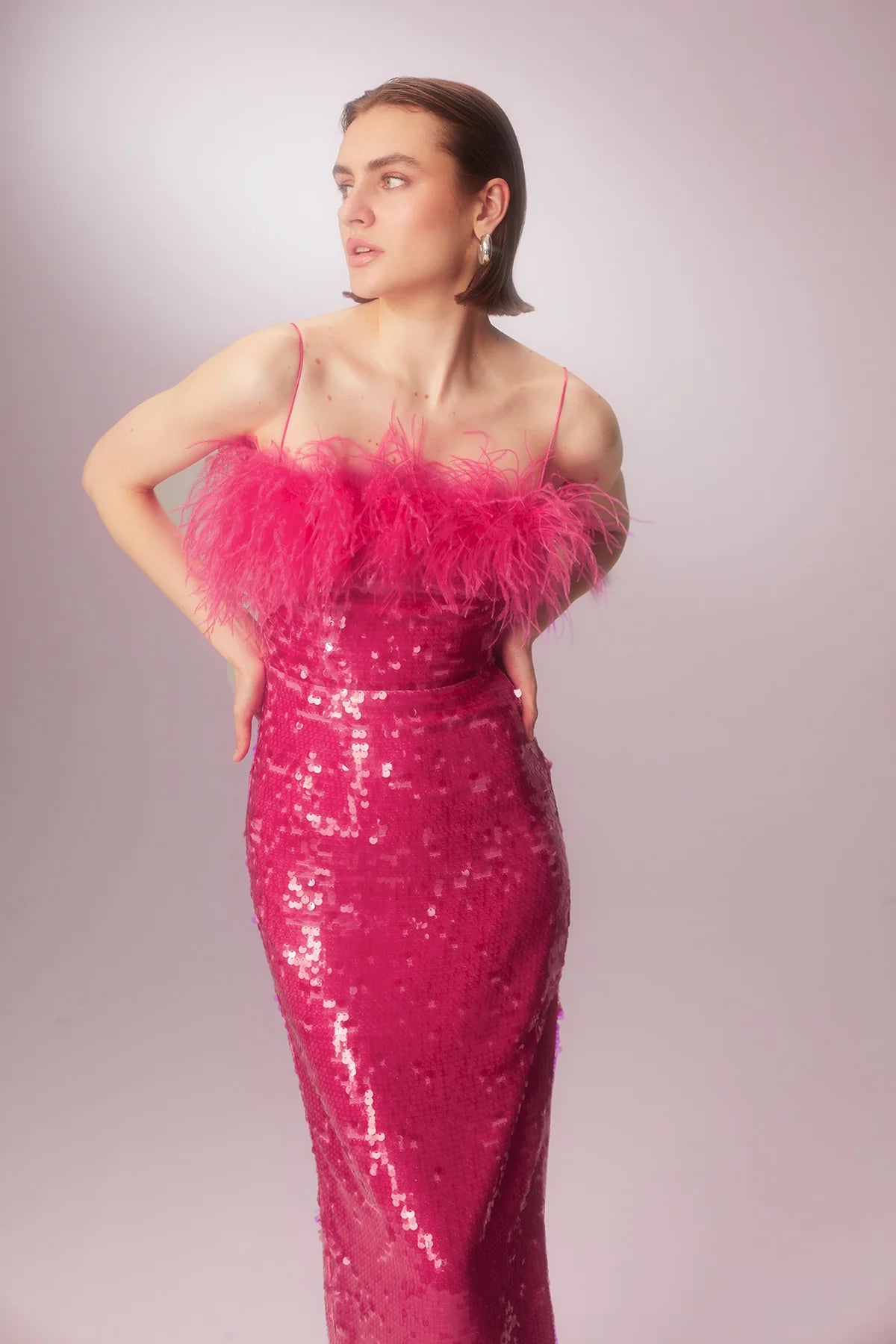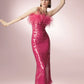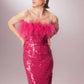 Fuchsia Feather-trimmed Sequined Midi Dress