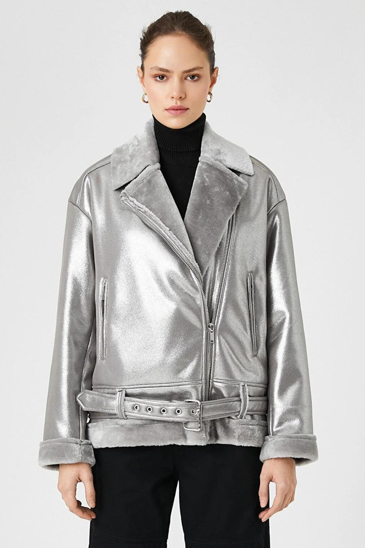 Meta Biker Jacket, the perfect blend of style and function. This jacket is designed for the modern woman who wants a stylish, high-quality jacket at a good price. The Meta Biker Jacket is a women's jacket that is made to order to fit your specific body type for a perfect fit. This jacket is perfect for women who want a jacket that is unique and different from what everyone else is wearing. The cool, modern and fashion-forward design of this biker jacket will elevate your style and make you stand out in the crowd. Be bold, be unique and make a statement with our Meta Biker Jacket.