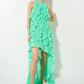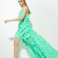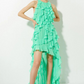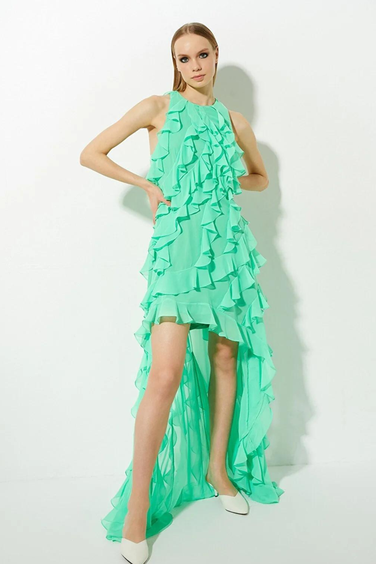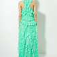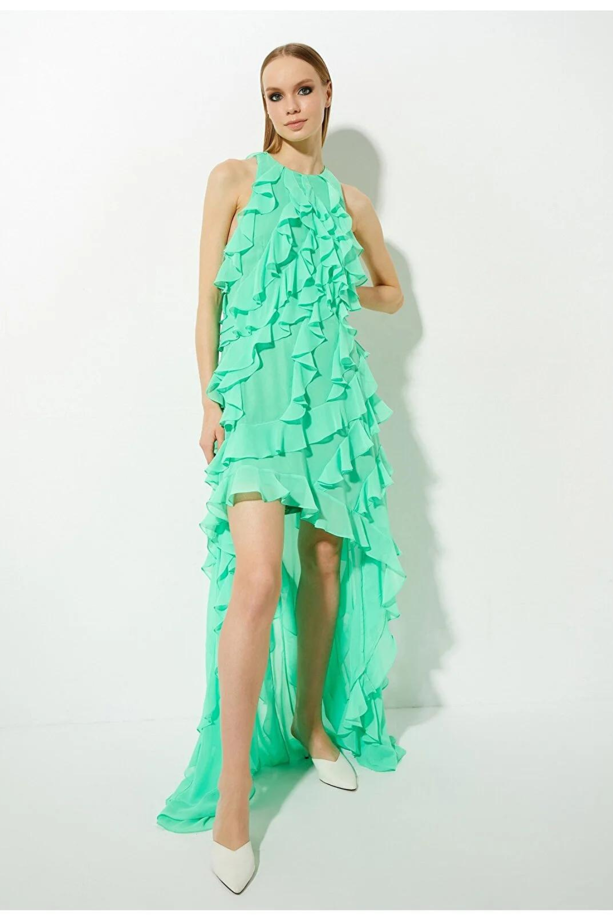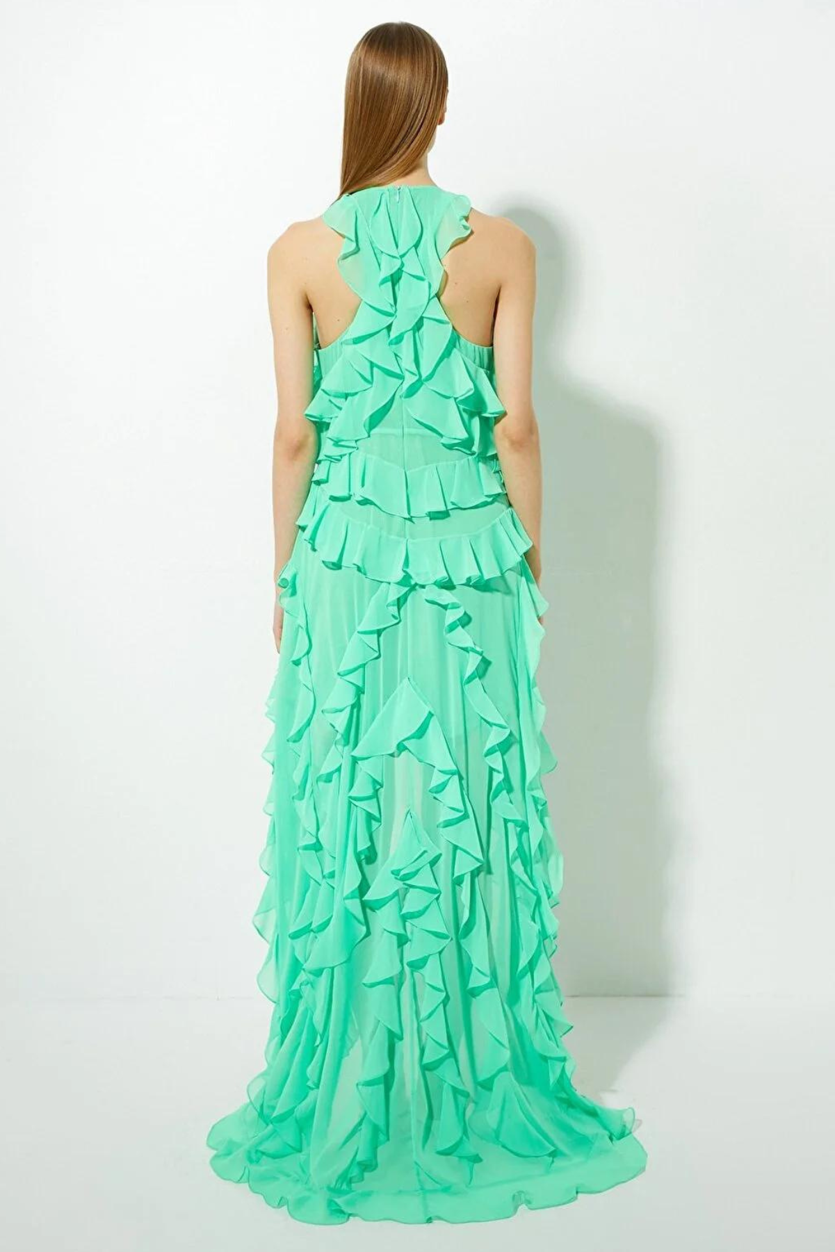 Green Asymmetrical Ruffle Detailed Maxi Dress
