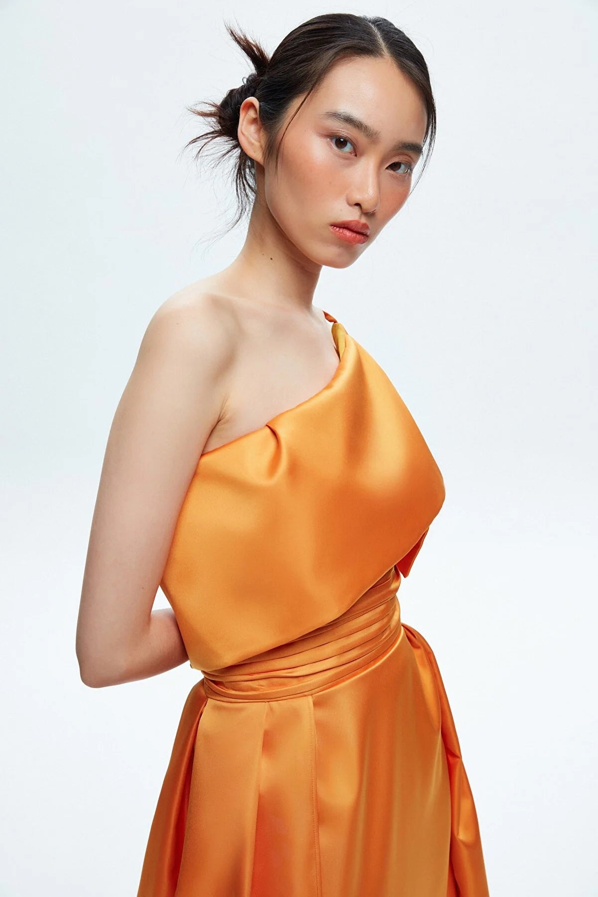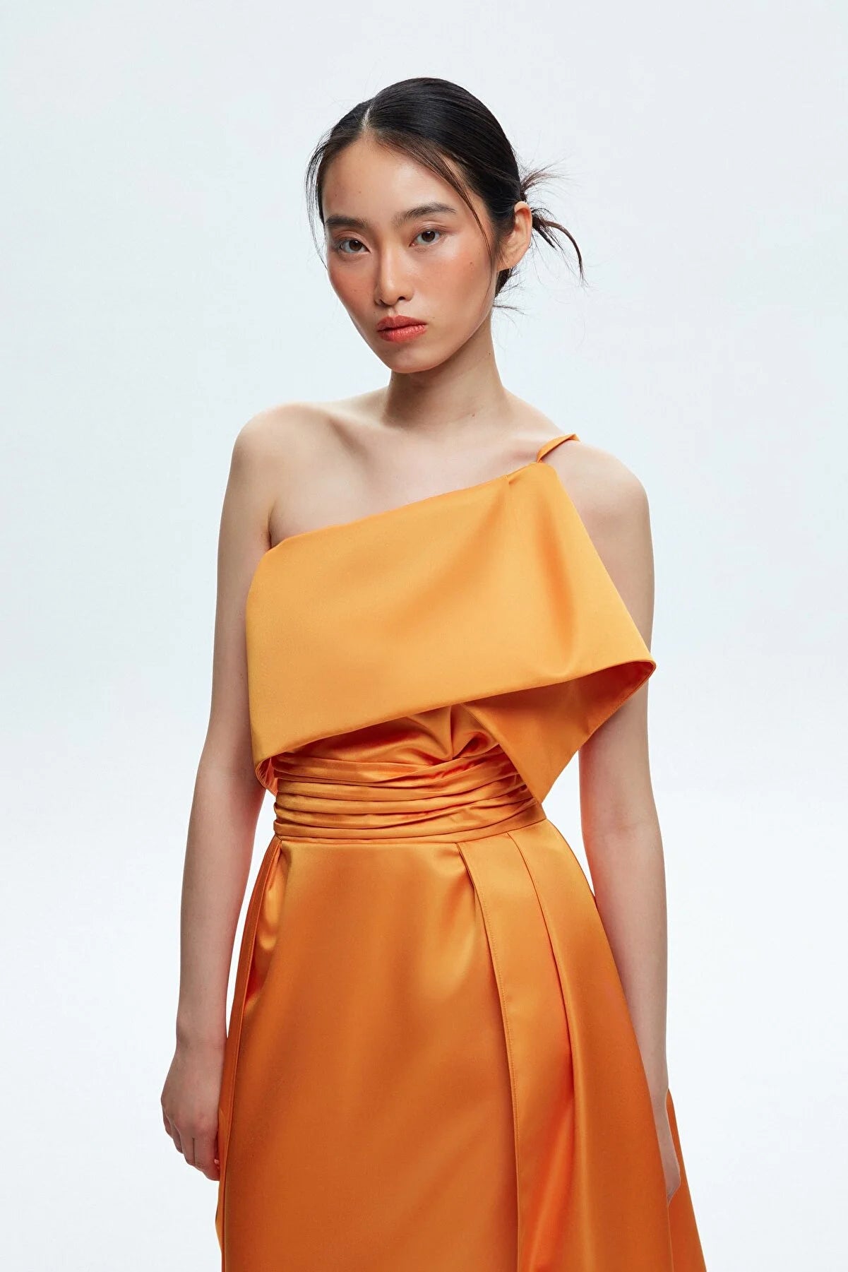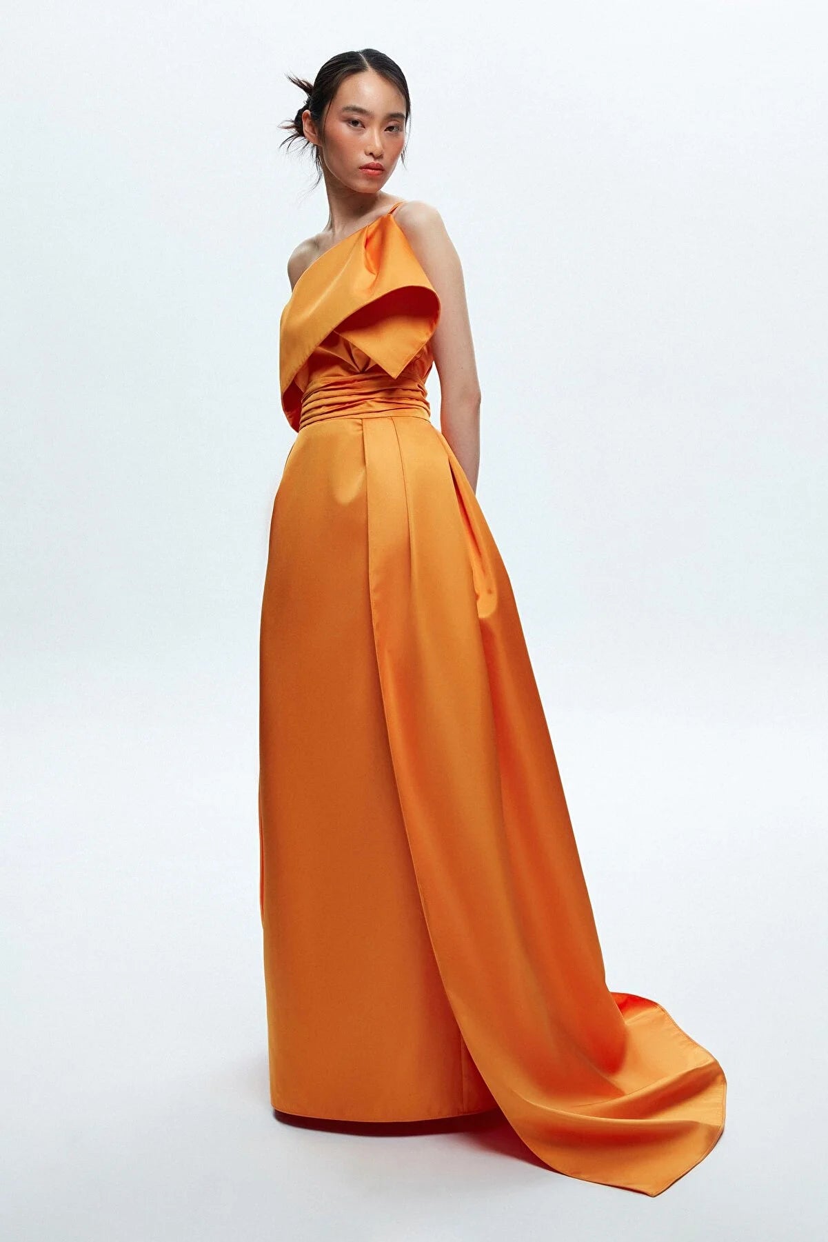 Orange Asymmetrical Taffeta Maxi Dress