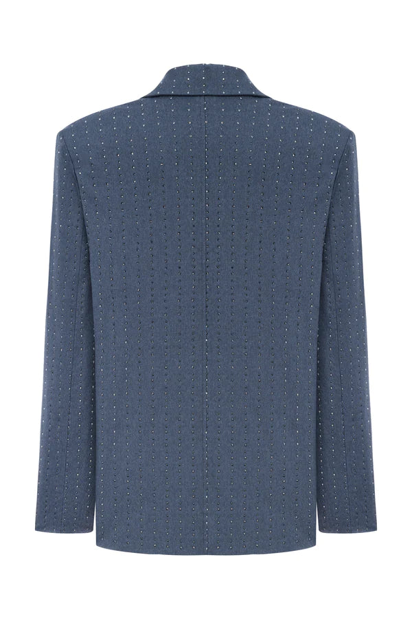 Elevate your outerwear game with the Reflections Blazer Jacket, meticulously adorned with shimmering stones. It is designed to perfection for a flawless fit. This classic and stylish piece features convenient pockets, adding both functionality and flair to your ensemble.