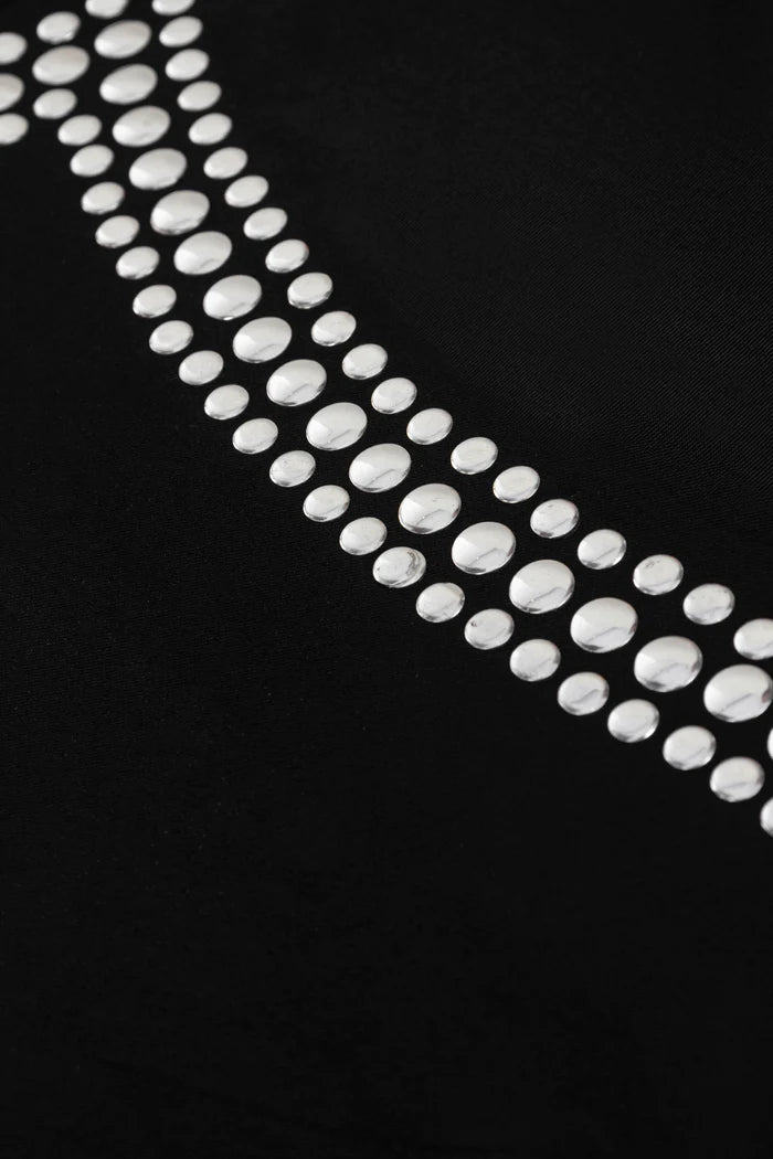 This eye-catching embellishment adds a dash of elegance and sparkle to your ensemble. With a long neck and flexible, comfortable fabric, this top is perfect for making a statement at any event, ensuring you both look and feel your best. Turn heads and embrace uniqueness with this extraordinary addition to your wardrobe.