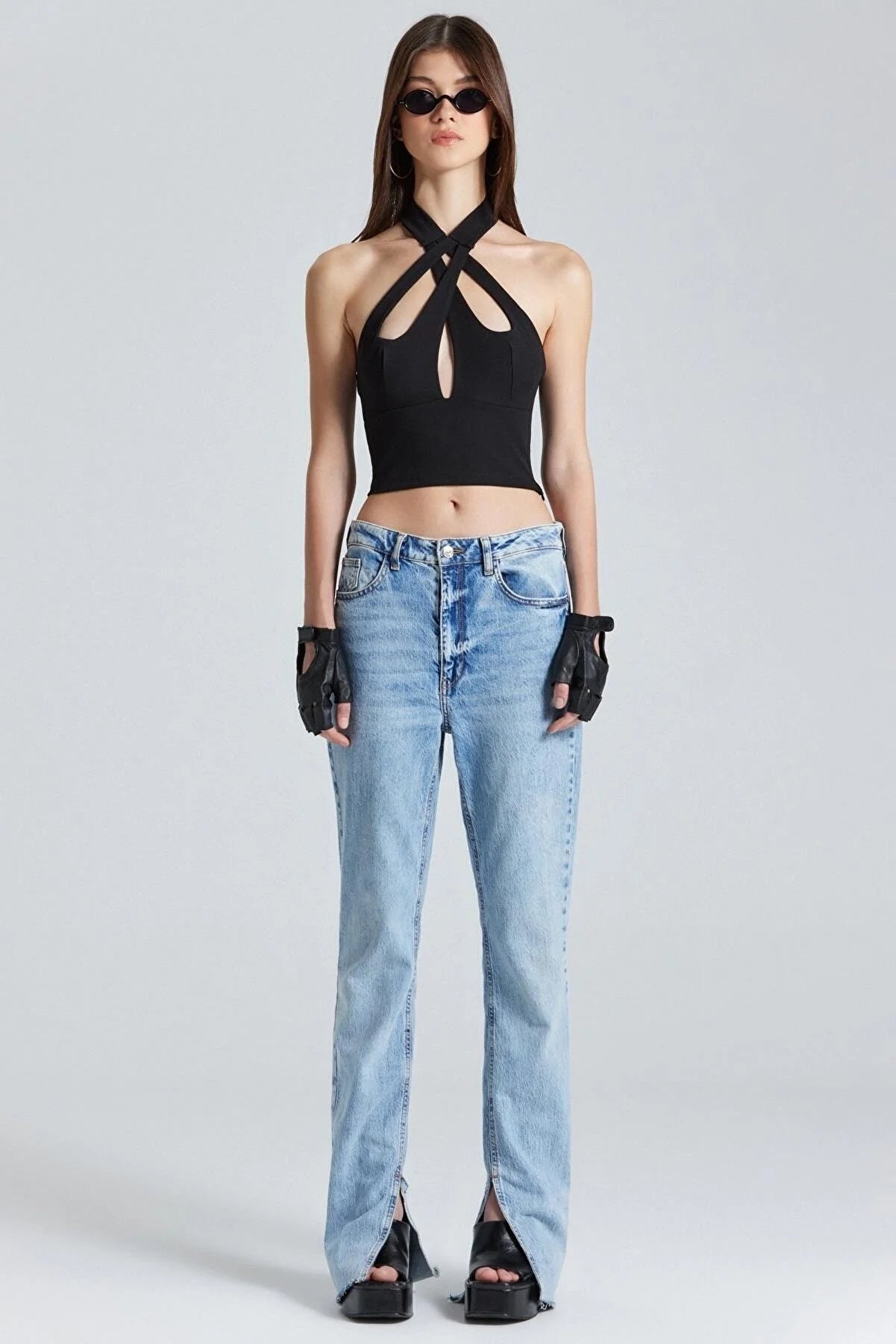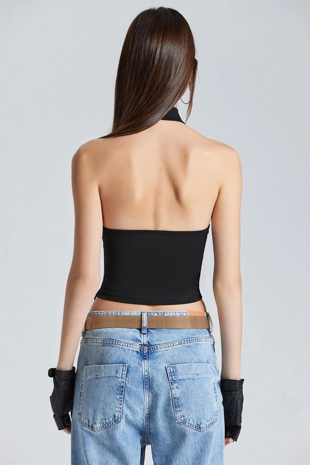 Black Open Back Detailed Top